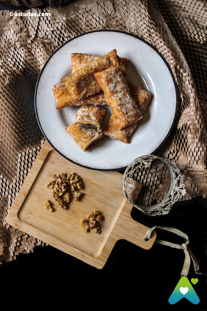 Las casadiellas o «casadielles» son una masa de harina de trigo que se rellena con una mezcla de nueces, azúcar y anís; también hay quien la elabora con masa de hojaldre. Son 15 cm. de longitud llenos de dulzura.